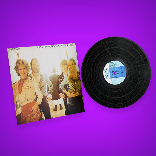 Collect with your mouse or keyboard all music artefacts from the time when ABBA won the Eurovision Song Contest in 1974 with their song 'Waterloo'.